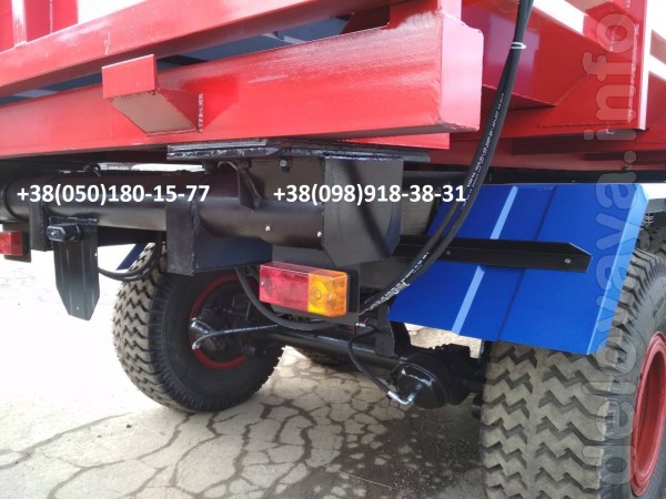 Выгрузка сыпучих осуществляется назад, дополнительно можно установить окна для разгрузки в горизонтальном положении. Дополнительно можно укомплектовать прицепы гидроцилиндрами на задний борт, тентом, дополнительными бортами.
