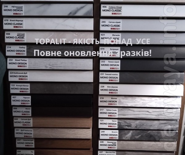 Ми представляємо повне оновлення колекції підвіконь Topalit – такого різноманіття немає у жодного іншого постачальника. Відчуйте унікальність кожного виробу: ніжна текстура дерева, молотковий ефект каменю та шовковисто-матова гладка поверхня розкриють індивідуальність Вашого інтер’єру.