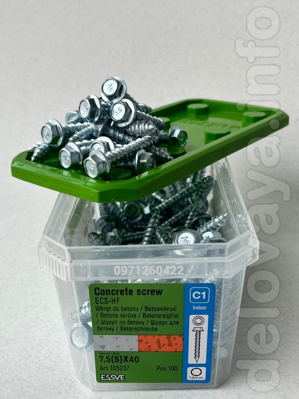 Артикул 105281 від шведського бренду ESSVE — це професійний бетоношуруп (нагель з фланцем), який не потребує пластикових ...