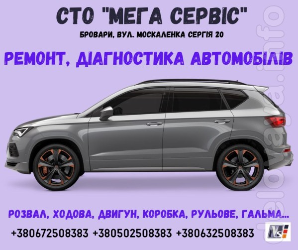 СТО "Мега Сервіс" в Броварах пропонує всім автолюбителям пройти ендоскопію мотора вашого автомобіля і побачити всі проблеми серця машини та перевірити пробіг авто. Особливо потрібна діагностика чи ендоскопія вживаним автомобілям, авто які ви пригнали чи збираєтеся купувати. Перевіривши стан автомобіля ви не купите кота в мішку. Тому запрошуємо вас до нас на СТО "Мега Сервіс" для вирішення буд яких проблем з вашим автомобілем. Ремонтуємо всі марки автомобілів. Наша адреса: Бровари, вул. Москаленка Сергія 20 Телефони: +380672508383, +380502508383, +380632508383
