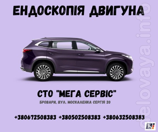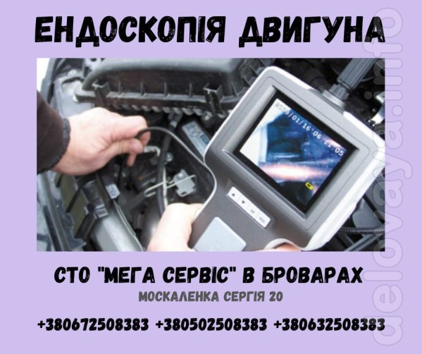 Ендоскопія двигуна вашого автомобіля якісно та не дорого - це збереже ваш час та гроші. Ремонт двигуна авто, ремонт кузова, ходової, розвал сходження, ремонт стартера, генератора, ремонт рульового, гальмівна система, діагностика автомобіля, шиномонтаж, балансування. Малярний цех, кузовні роботи, рихтовка, покраска авто, полірування, всі види робіт. Наша адреса: Бровари, вул. Москаленка Сергія 20