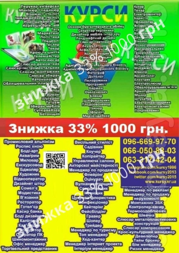 Акція знижка 33% на навчання 1000 гр на курси