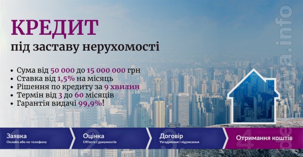 Приватна позика під заставу житлової та комерційної нерухомості.